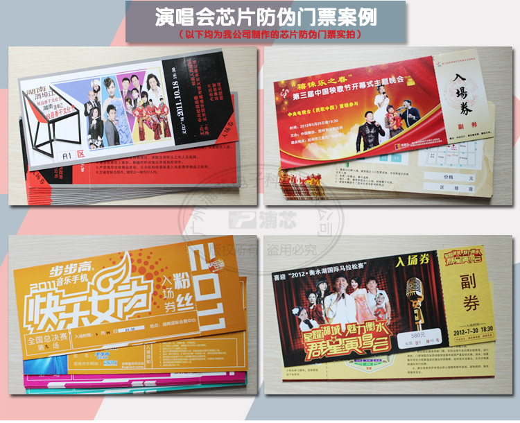 浦芯制作的rfid防偽門票部分典型案例(不含由中間銷售商的部分)